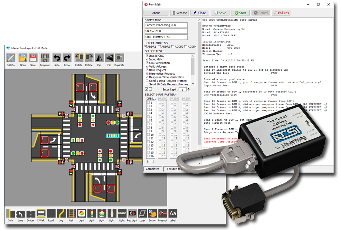 The Virtual Cabinet is a complete diagnostic and testing toolkit for all devices that communicate on the SDLC bus in the ATC or TS2 Cabinets. The Virtual Cabinet connects to a Windows based computer with a USB connection. By using an intuitive graphical software interface, The Virtual Cabinet can be configured to emulate a cabinet controller or the cabinet SIU/BIU devices.